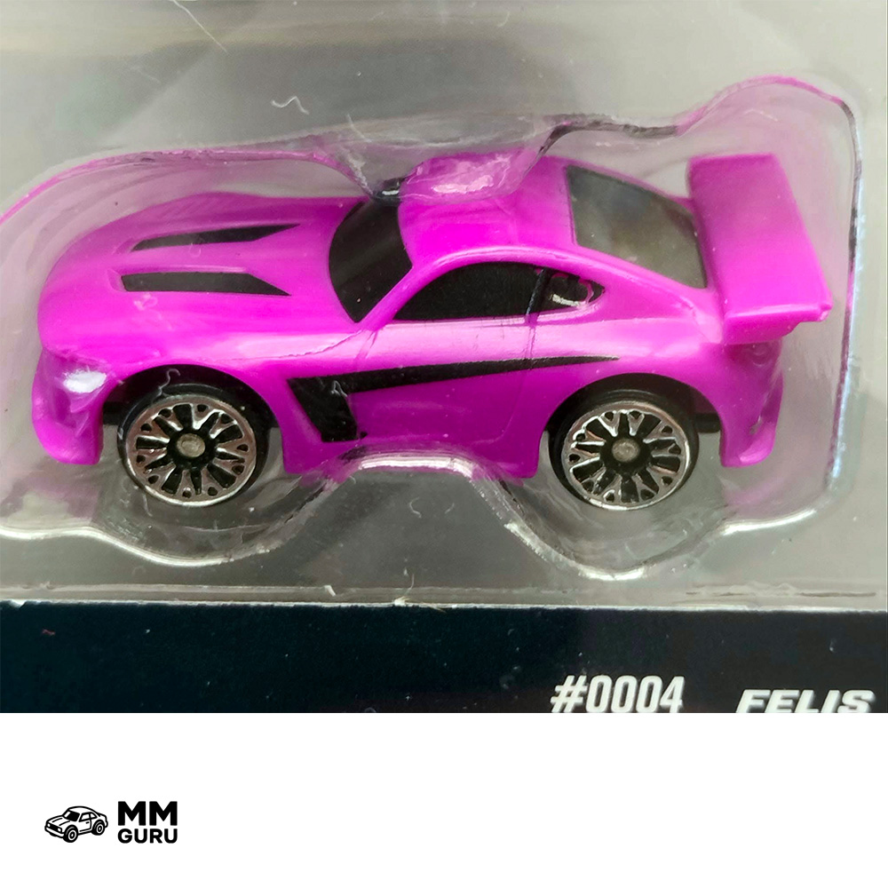The Felis is a supercar coupé with a long hood and a large rear wing. Judging by the front end and the big air intake, I think the creators of this Micro Machines model took inspiration from the Mercedes-Benz GTR. This easily found example comes in an unlikely fuchsia color with black decorations; it could be found in the Blind Bags, in the Super 15 Collection 1, and also in the Super 20 Collection, all released in Series 1 in 2020.