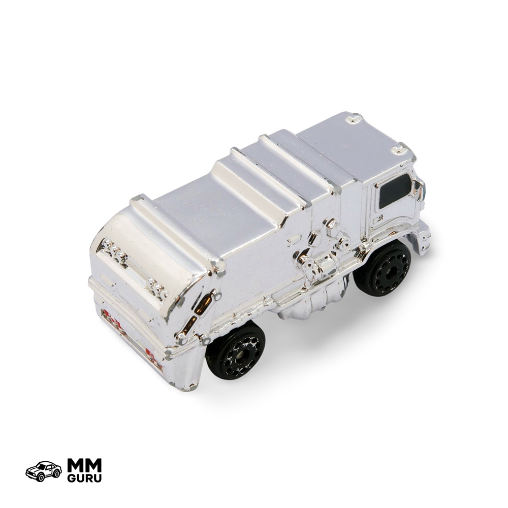 Micro Machines MMGuru Construction - Work Trucks #0095 Garbage Truck, Silver Chrome, isometric view#0095 Garbage Truck