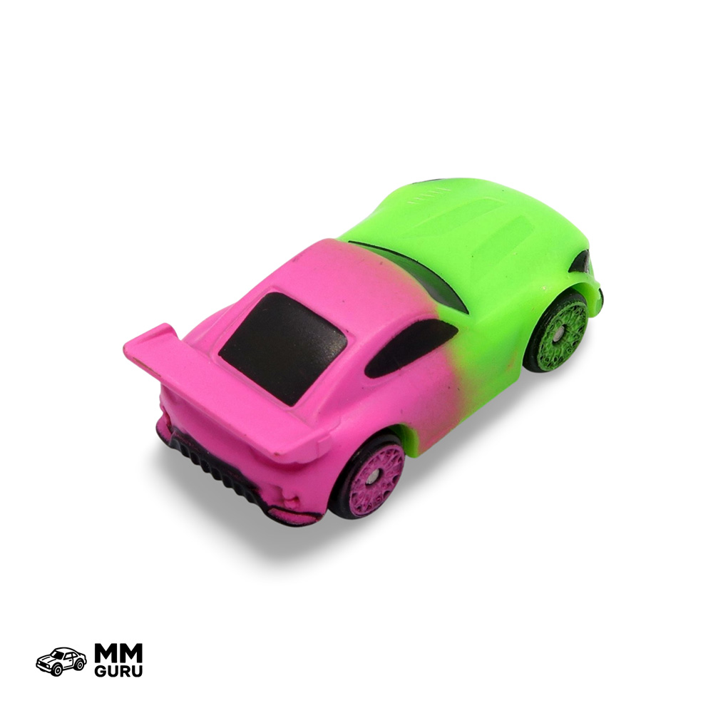 The Felis is a supercar coupé with a long hood and a large rear wing. Judging by the front end and the big air intake, I think the creators of this Micro Machines model took inspiration from the Mercedes-Benz GTR. This model is green at the front and pink at the rear, with a nice gradient separating the two colors. The wheel rims are also customized, featuring the two different colors on the axles.