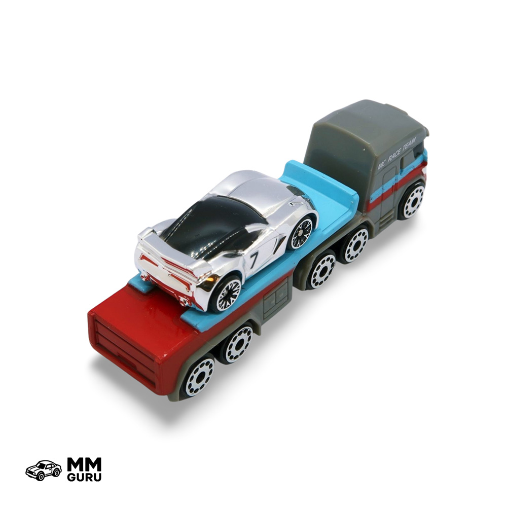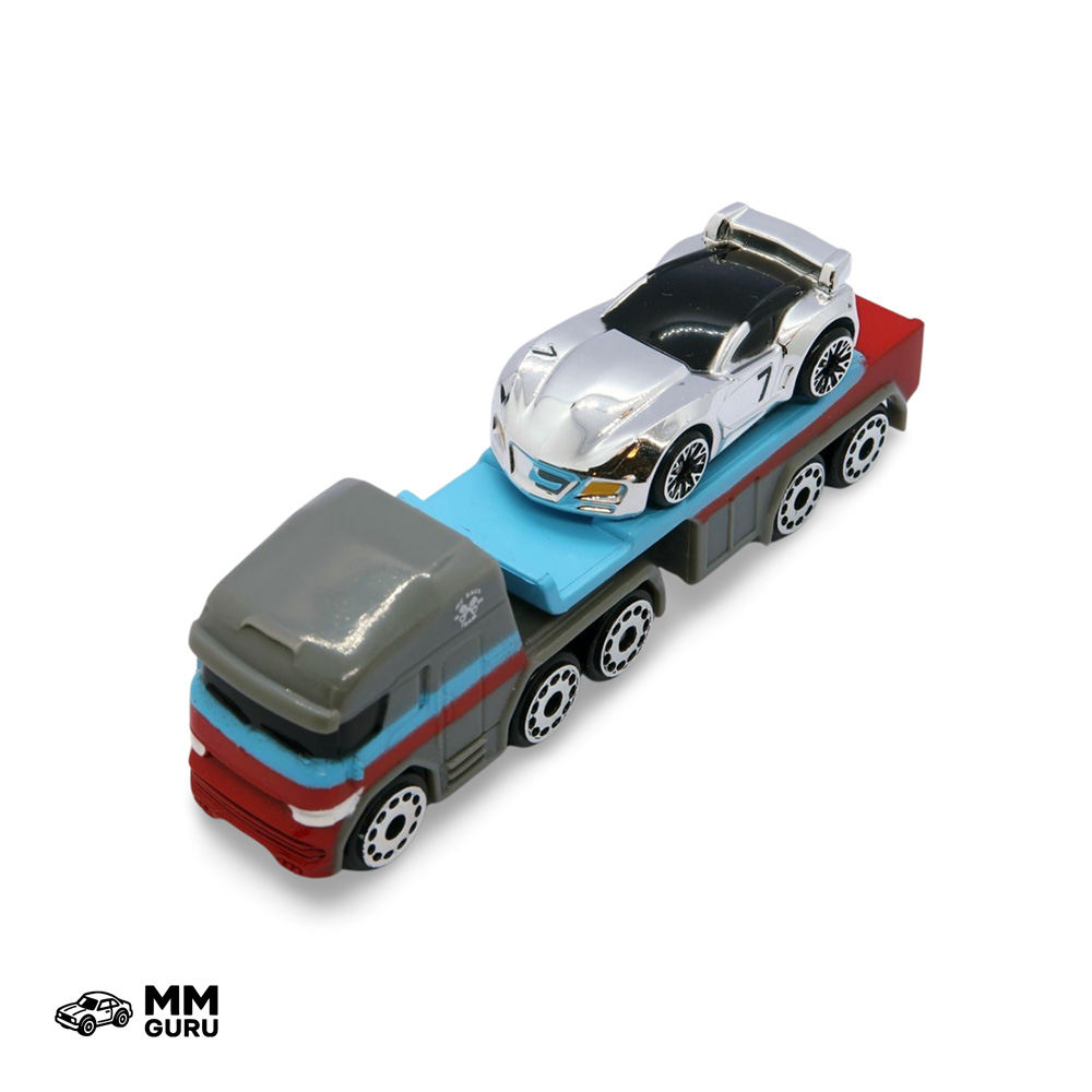Third starter pack from Series 1 (2020), this set includes a flatbed semi truck and a silver chromed chase vehicle.