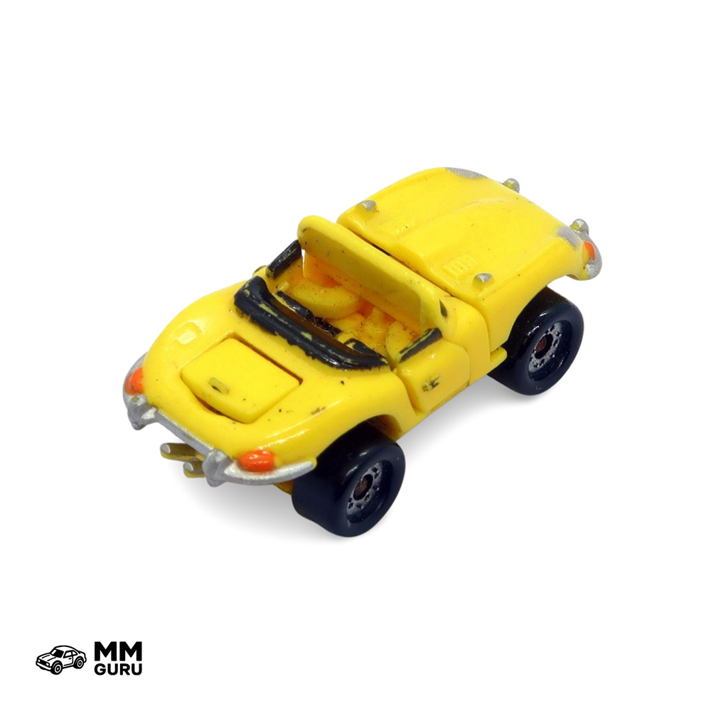 The 1960s Jaguar E-Type convertible is widely regarded as one of the most beautiful sports cars ever created. Its long bonnet, sleek curves, and low, elegant profile defined a new era of automotive design. Combining striking looks with strong performance from its inline-six engine, the E-Type offered a blend of style, speed, and sophistication that made it an icon of British motoring and a timeless classic. In this model we see an engine hood that opens by tipping forward. The doors rotate through a wide angle; the trunk, rather small, has a slight indentation to allow it to be opened with your fingers. One flaw of the model is that the wheels sit a bit too far from the body.